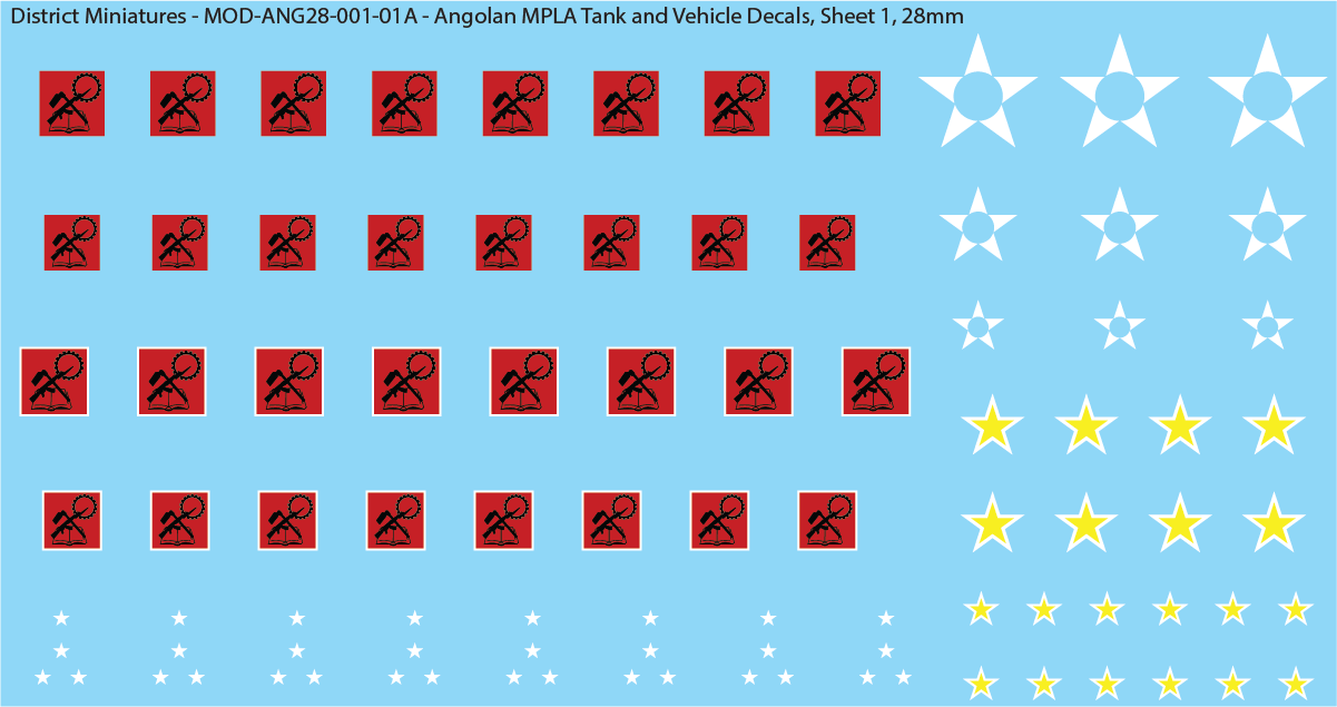 Angolan MPLA Tank and Vehicle Decals (Multiple Options), 28mm