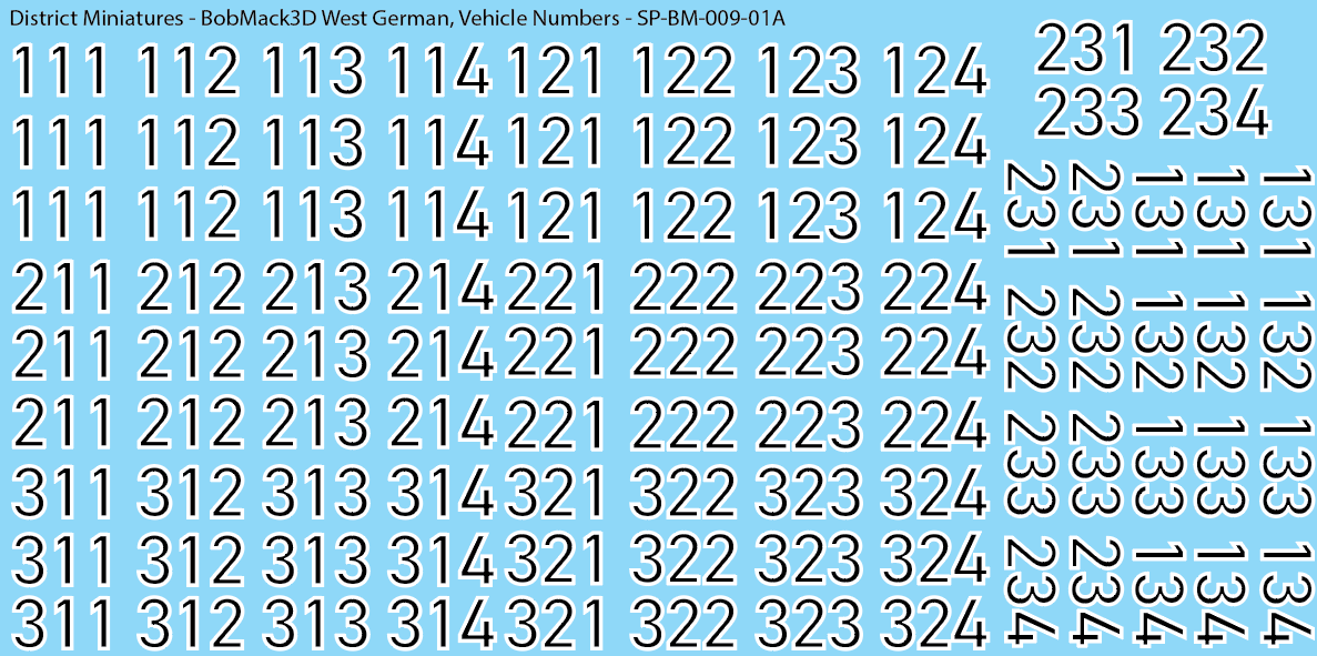 BobMack3D West German - Vehicle Numbers 28mm Decals