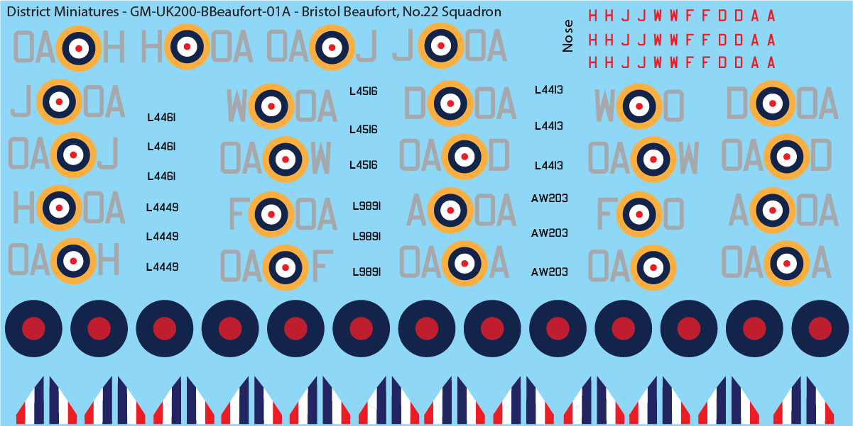 Bristol Beaufort, No.22 Squadron, 1/200 Decals
