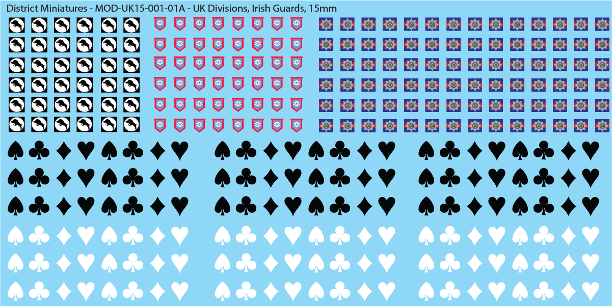 - Sheet A: Irish Guards. Includes card suite platoon identification markings.