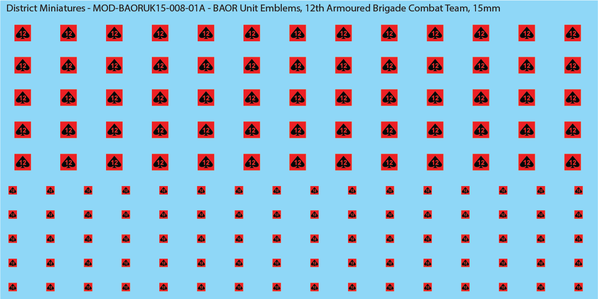 Decals for UK British Army of the Rhine (BAOR) British unit emblems.