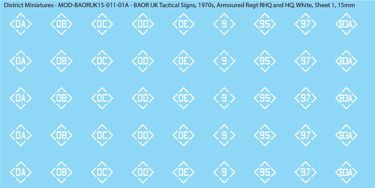 UK BAOR - Tactical Signs, 1970s, Armoured Squadrons, Regt RHQ and HQ, 15mm