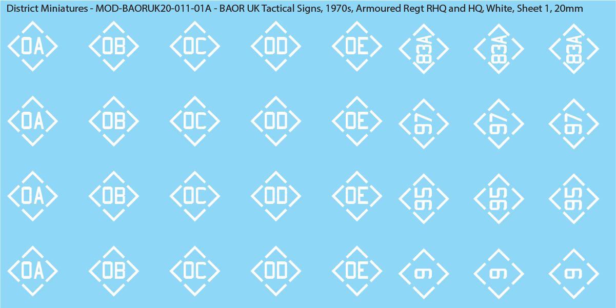 UK BAOR - Tactical Signs, 1970s, Armoured Squadrons, Regt RHQ and HQ, 20mm