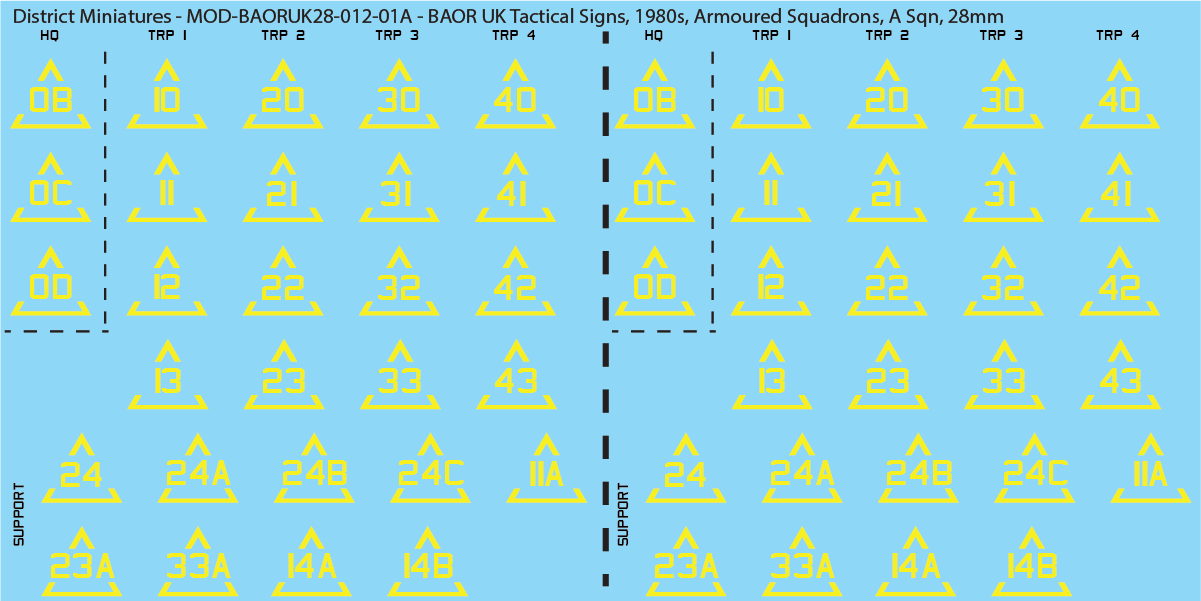 Decals for UK British Army of the Rhine (BAOR) armoured squadron tactical signs for the 1980s.