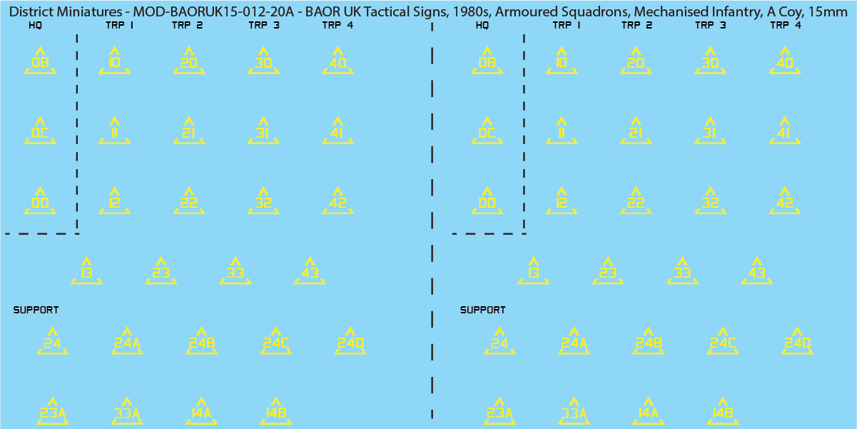 UK BAOR - Tactical Signs, 1980s, Armoured Squadrons, Mechanised Infantry Companies, 15mm