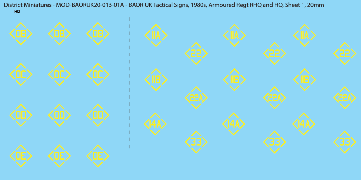 UK BAOR - Tactical Signs, 1980s, Armoured Squadrons, Regt RHQ and HQ, 20mm