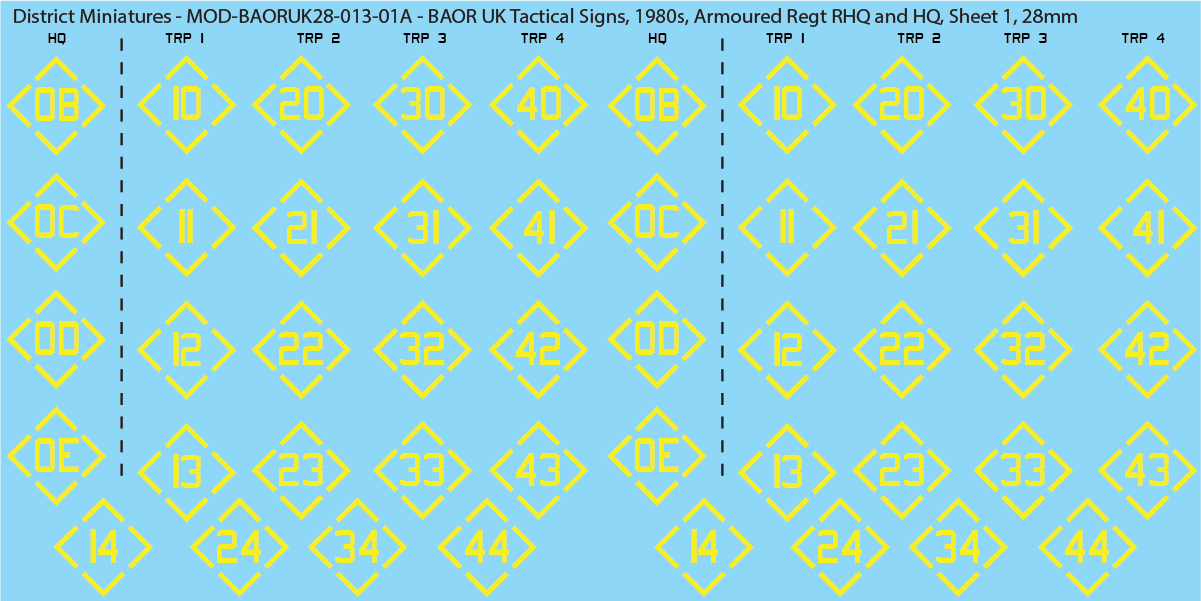 UK BAOR - Tactical Signs, 1980s, Armoured Squadrons, Regt RHQ and HQ, 28mm