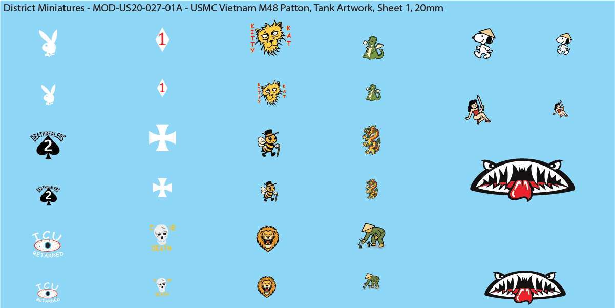 USMC Vietnam M48 Patton Tank Artwork, 20mm Decals