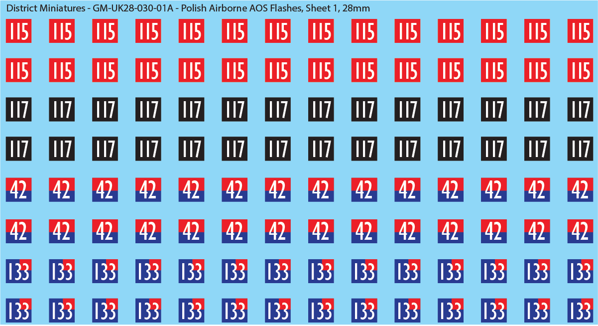 Decals for the Polish Airborne AOS Flashes. I have not been able to find a full list and organization of Polish airborne flashes within the UK military. I've based the current decals from historical images and accounts.