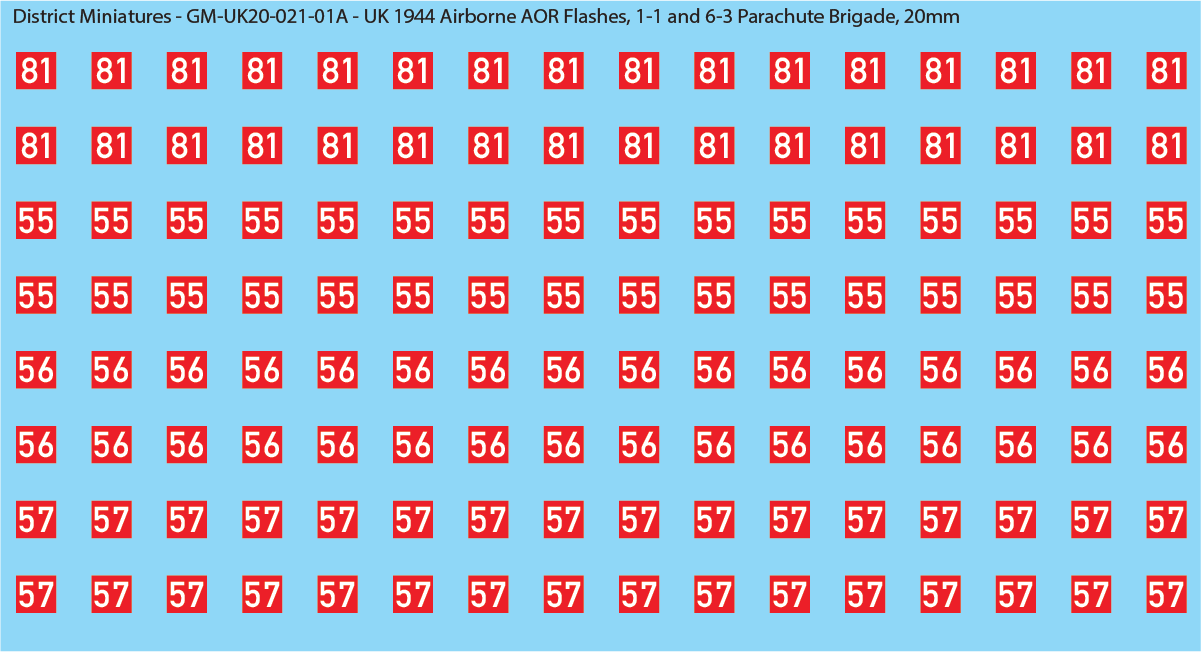 Decals for the WW2 UK 1944 Airborne AOR Flashes for vehicles. These are for the 1st and 6th Airborne Divisions.