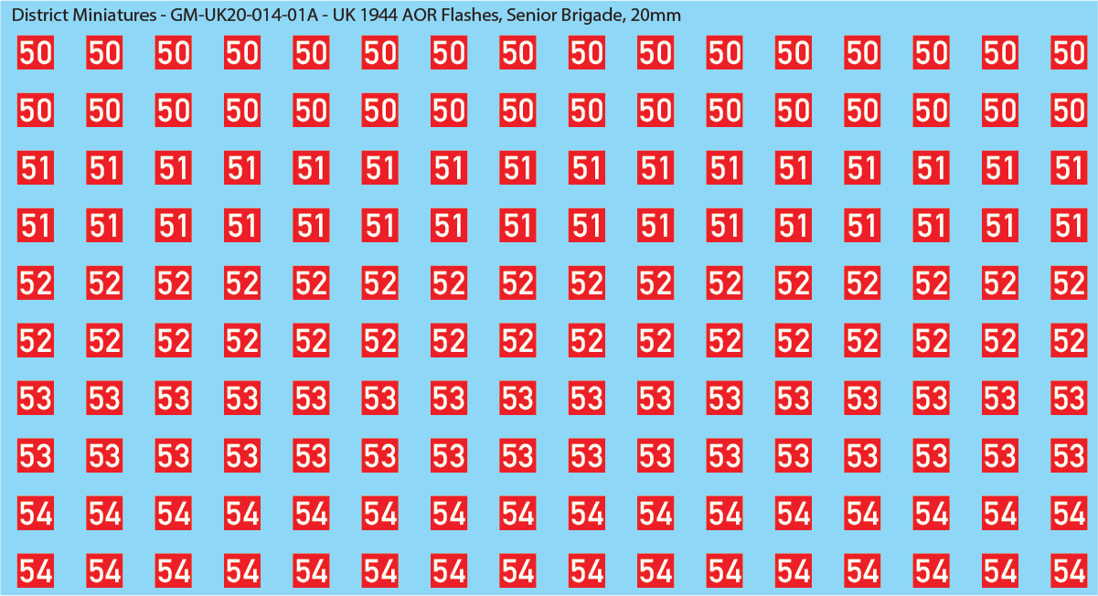 WW2 British - UK 1944 Armor AOR Flashes, 20mm Decals