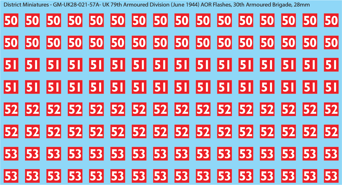 WW2 British - UK 79th Armoured Division (June 1944) AOR Flashes (Multiple Options), 28mm Decals
