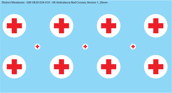 Decals for Ambulances. These are for a variety of different vehicles and can also be used for other nations. Sizes are Height x Width in millimeters.