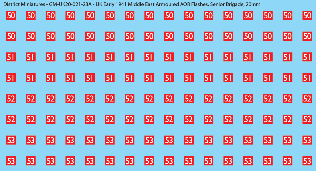 WW2 British - UK Early 1941 Middle East Armor AOR Flashes (Multiple Options), 20mm Decals