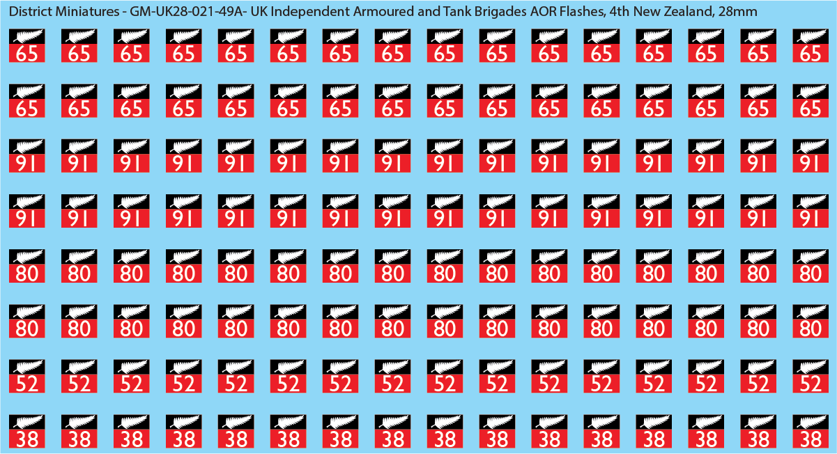 WW2 British - UK Independent Armoured and Tank Brigades AOR Flashes (Multiple Options), 28mm Decals