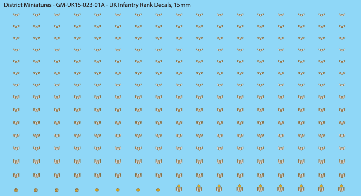 WW2 British - UK Infantry Rank Decals (Multiple Options), 15mm Decals