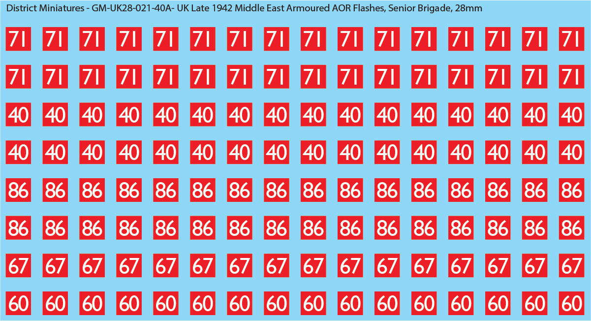 WW2 British - UK Late 1942 Middle East Armor AOR Flashes (Multiple Options), 28mm Decals