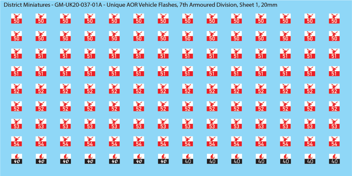 Decals for a variety of WW2 UK unique AOR flashes for different units. These are similar to our other AOR flashes but often have unique things about them such as their brigade/unit's emblem with the AOR flash.