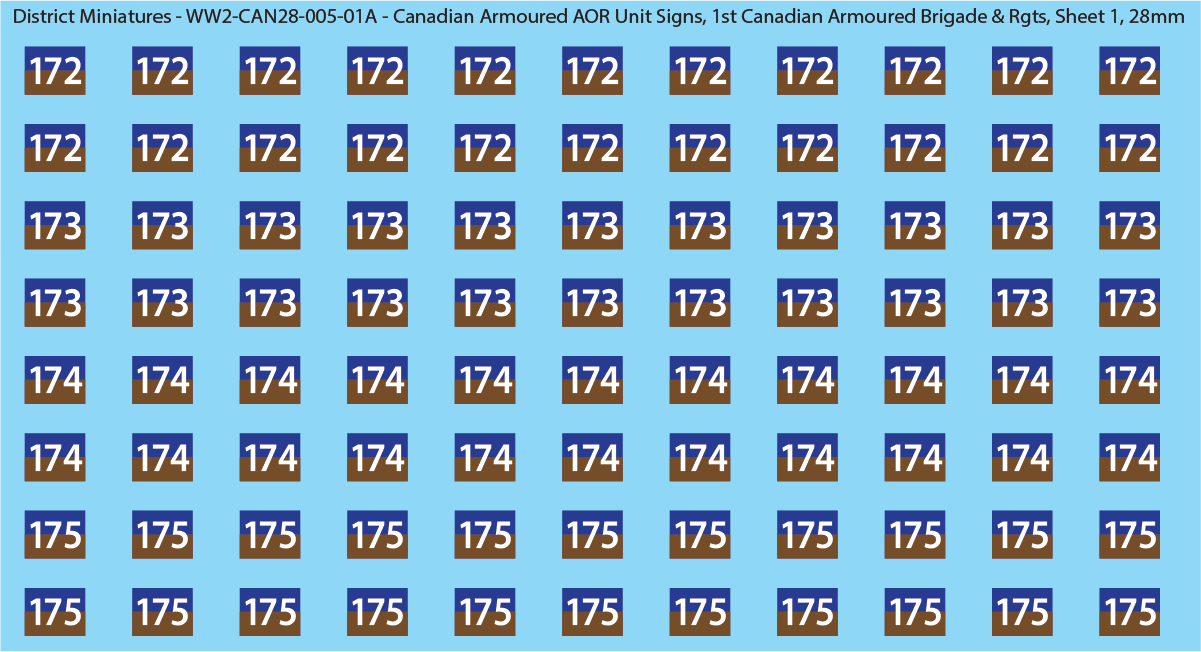 Decals for WW2 Canadian Armoured AOR Unit Signs. Majority of AOR unit signs can be found in the UK section. These include signs that are Canadian-specific, and are not found on the UK product pages.