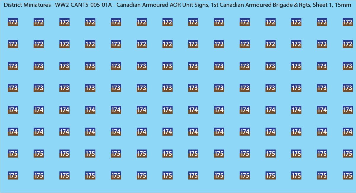 Decals for WW2 Canadian Armoured AOR Unit Signs. Majority of AOR unit signs can be found in the UK section. These include signs that are Canadian-specific, and are not found on the UK product pages.