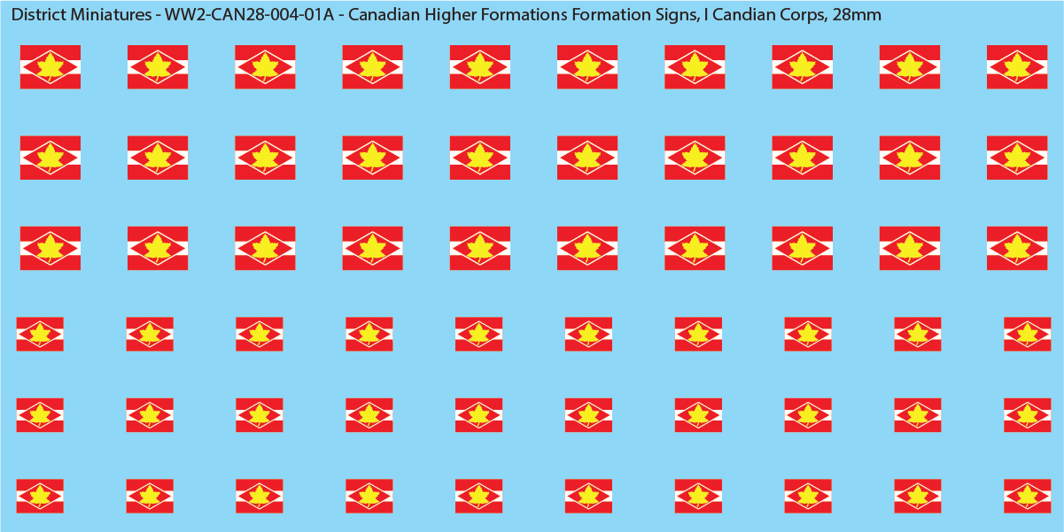 Decals for WW2 Canadian Higher Formations Formation Signs. These are for vehicles and come with two sizes each.