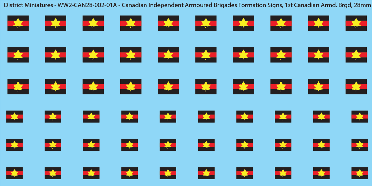 Decals for WW2 Canadian Independent Armoured Brigades Formation Signs. These are for vehicles and come with two sizes each.
