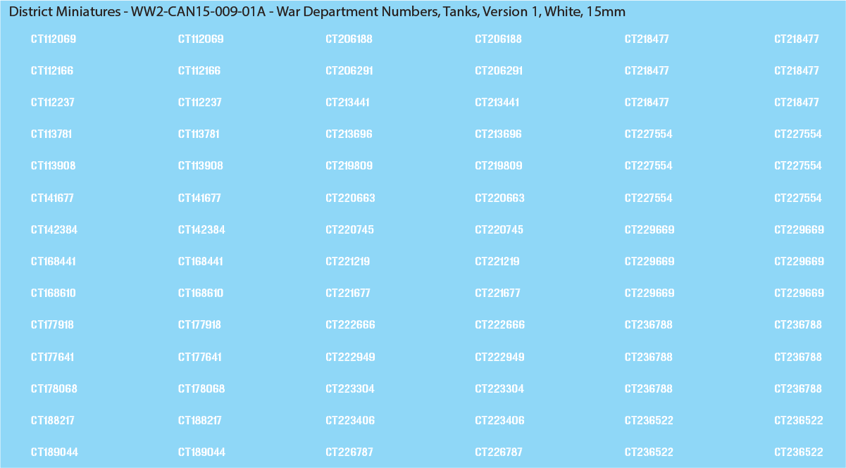 WW2 Canada - Canadian War Dept Numbers, Tanks, 15mm Decals