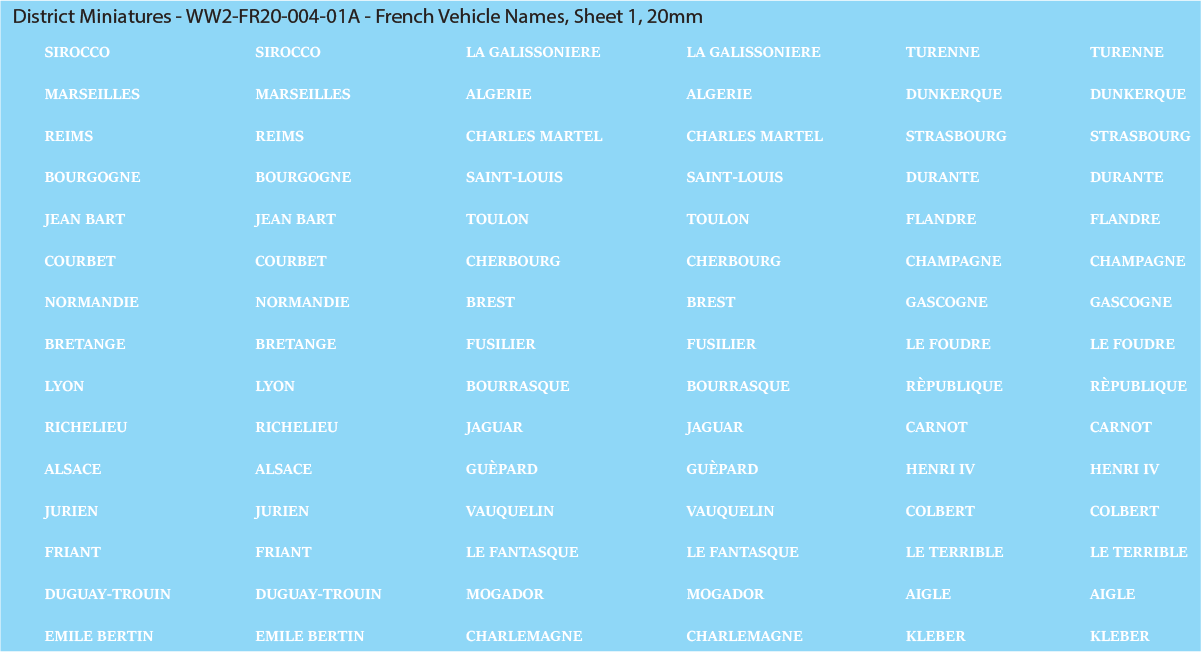 Decals for WW2 French vehicle names