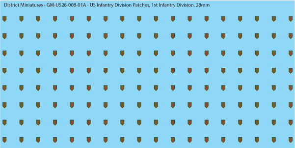 Decals for 28mm WW2 US Infantry Division Patches. These are placed on the shoulder of infantry units. You can also place these on helmets since you can obtain these in different sizes (even in 28mm, 20mm, and 15mm). These are incredibly small, especially at scales smaller than 28mm so handle carefully!